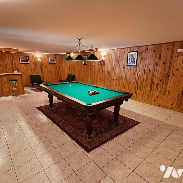 Sous-sol complet avec porte électrique : espace idéal pour garage, atelier ou rangement. salle de billard, portail électrique.